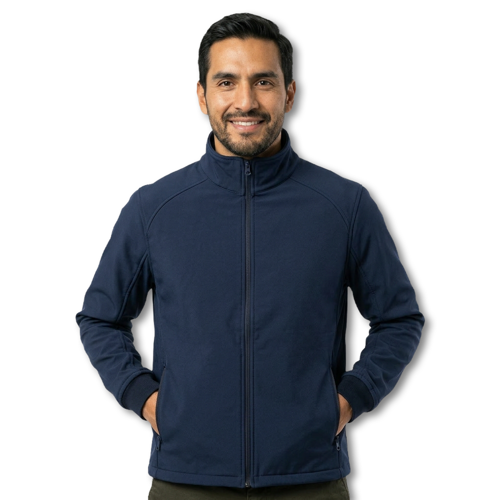Casaca softshell diseñada para trabajo en exteriores, impermeable, cortaviento y respirable, con excelente confort térmico y tacto suave.